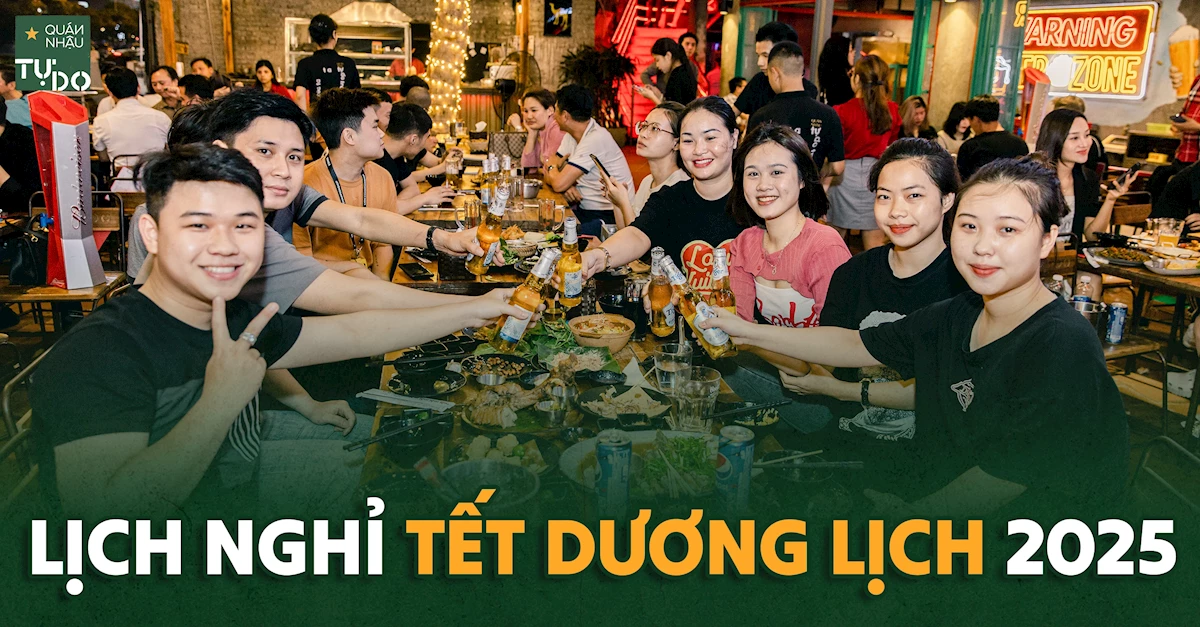 Tết Dương Lịch 2026 đang đến gần và chắc hẳn anh em đang nóng lòng lên kế hoạch nghỉ ngơi, tụ tập sau một năm làm việc bận rộn. Vậy lịch nghỉ Tết Dương Lịch 2026 cụ thể như thế nào? Cùng tìm hiểu thông tin chính xác và đừng quên lựa chọn một địa điểm tụ họp lý tưởng như Quán Nhậu Tự Do để bùng nổ dịp lễ này nhé!
