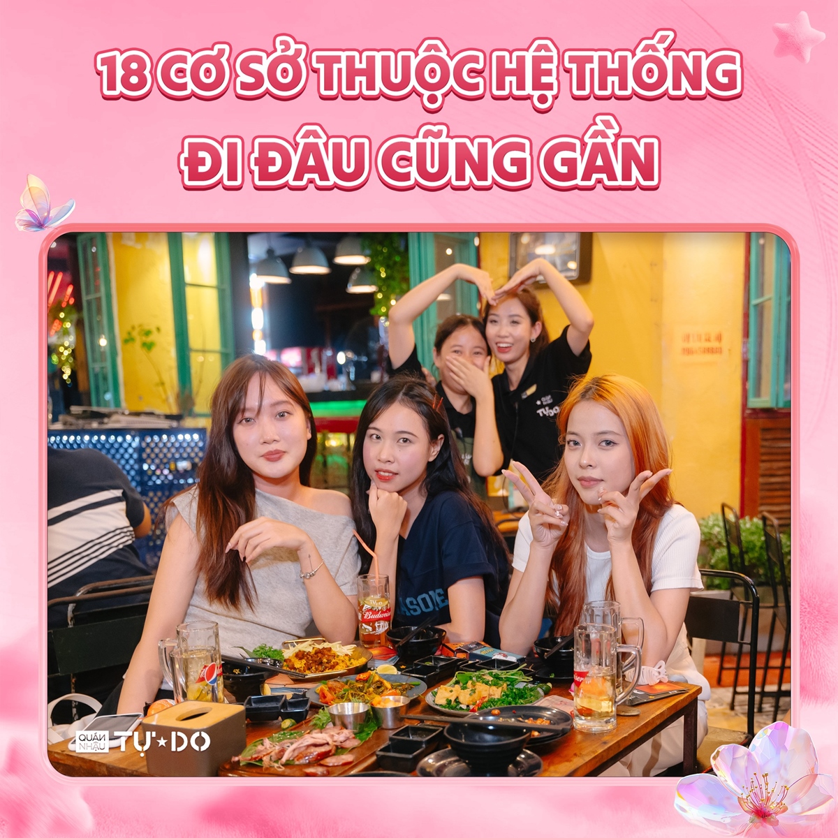 Bên cạnh đó, với 10 năm kinh nghiệm & 19 cơ sở khắp Hà Nội, Quán Nhậu Tự Do là địa điểm đặt tiệc uy tín cho dịp 08/03 với: